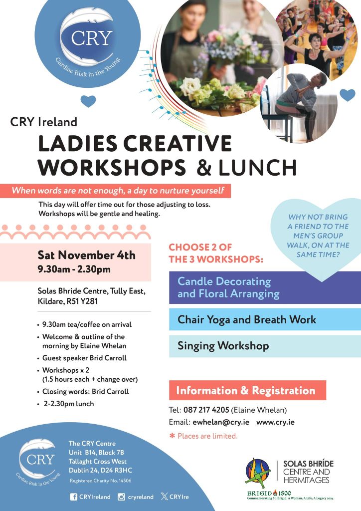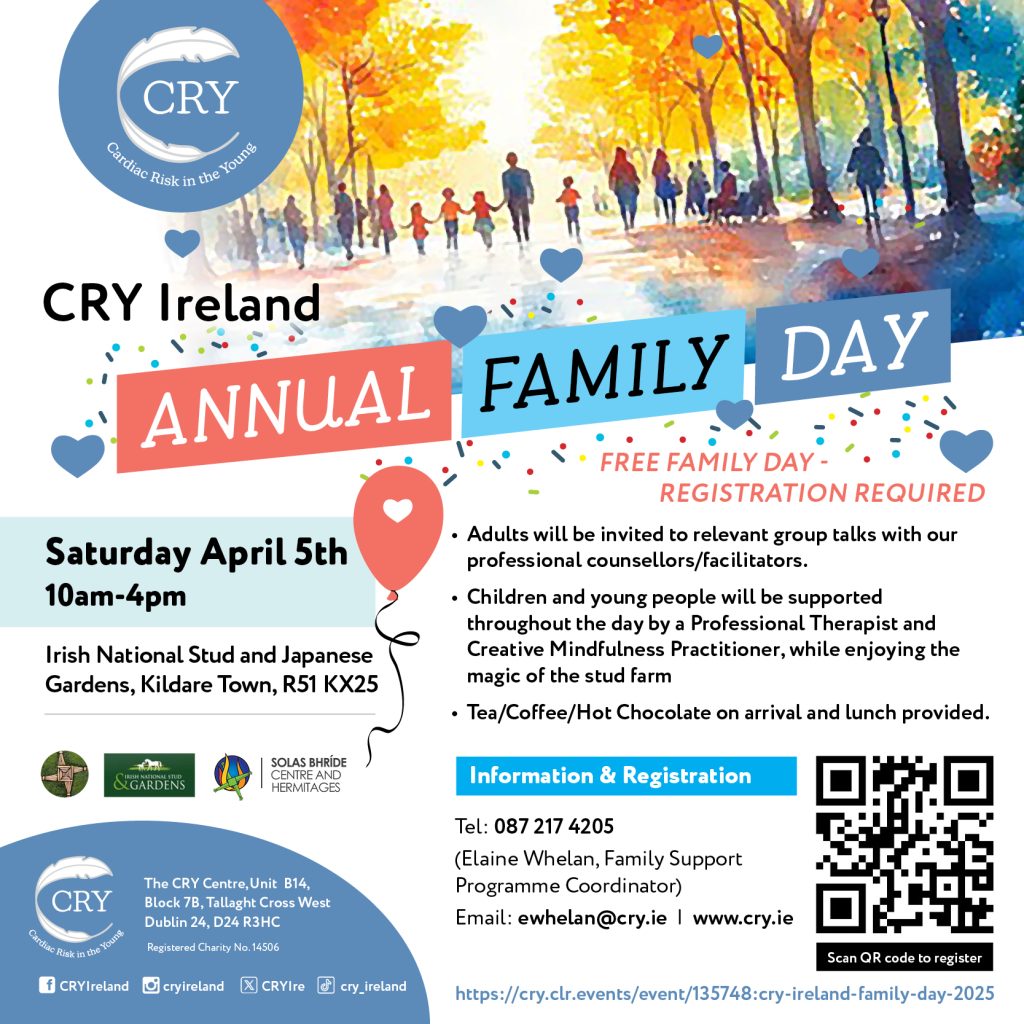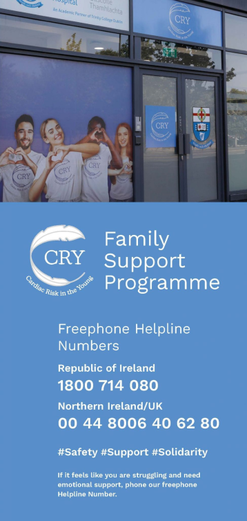 Our Family Support Programme Coordinator Elaine Whelan can be contacted directly on 087-2174205 or by email ewhelan@cry.ie